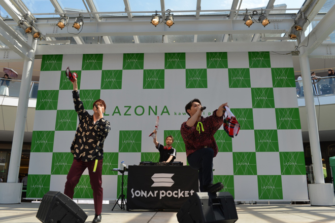Sonar Pocketが本日4月29日に、ニューシングル「一生一瞬」のリリースを記念し、ラゾーナ川崎にてミニライブとハイタッチ会を行った。