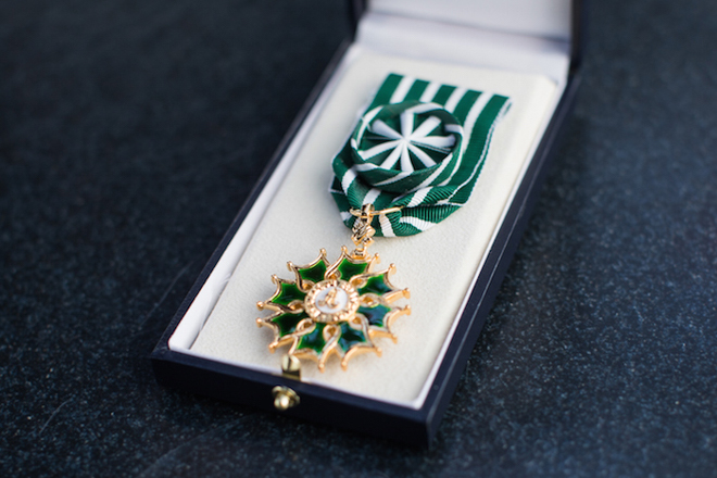 勲章授与式は現代アラブ美術館で4月28日に行われ、元文化庁長官で現代アラブ美術館の館長を務める、ジャック・ラングより授与された。