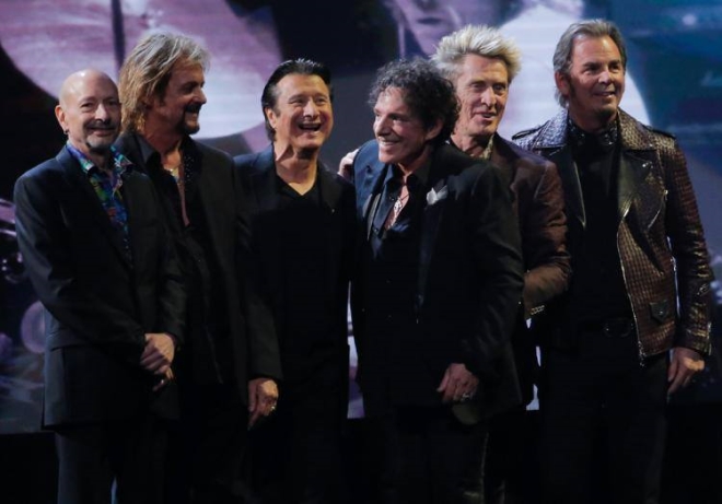 ジャーニーは、ジョナサン・ケイン、ニール・ショーン、スティーヴ・スミス、ロス・ヴァロリーに、元メンバーのスティーヴ・ペリー、エインズレー・ダンバー、グレッグ・ローリーが殿堂入りした。式典では、ピネダをフロントに「Separate Ways (Worlds Apart)」「Lights」「Don’t Stop Believin’」をパフォーマンス。「Lights」にはローリーとダンバーも参加した。