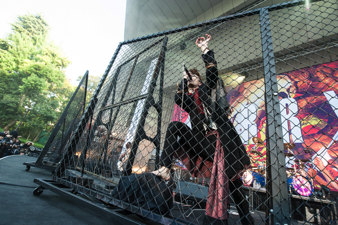 最新アルバム『NOnsenSe MARkeT』を軸に、結成から15年という活動の中でそれぞれの時代を震撼させてきた楽曲が織り交ぜられたセットリストに会場内の熱気も一気に上昇。2013年の同ステージで披露されてから封印されていた「screams of dark」を筆頭にMERRYライブ定番曲が披露される中、ステージに設置された9面のLEDスクリーンが駆使された演出や会場中央に設置されたサブステージでのガラ(Vo)のパフォーマンスも冴え渡る。時折気持ち良い5月の風が場内を包み込み、まさに野外ライブの醍醐味を味わう時間が流れ、本編を締めくくったのは「千代田線デモクラシー」。万歳で埋め尽くされる会場はまさに圧巻の景色を創り出した。