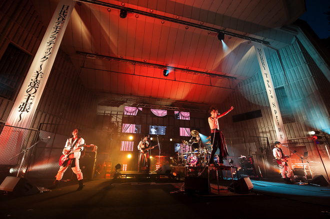 雲ひとつない晴天で迎えた<Tokyo Spring 日比谷デモクラティック 〜羊達の主張〜>日比谷野外大音楽堂公演は、そのタイトルにふさわしく「演説〜羊達の主張〜」で幕を開けた。全国から集結した羊達(ファン)の歓声と喝采がステージに負けじと響き渡り、続く「[human farm]」では“人間は社会に飼われているから。”と皮肉めいた歌詞が大都会・東京の空に突き刺さる。