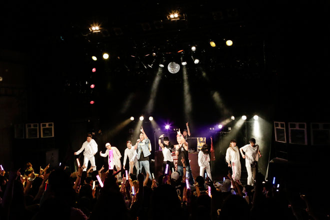 ライブも中盤に差し掛かり、ここで「6曲メドレー」、バラード曲の中でも人気が高い「アイヲクダサイ」「あいたくて」「5年後…」を連投。そして、6人の女性ダンサーがステージ上に現れ披露した「スタートライン」を皮切りに「学園天国」「アンコール」「湾怒羅不斗 〜不屈の特攻隊長〜」と再び怒濤の勢いで突っ走っていく。さらに、サプライズ演出として「会いたい夜」 でコラボしたMacheriが10周年をお祝いしに登場し華麗な歌声を届けた。さらに会場を煽るように、再びダンサーが登場し「ワンダフルデイズ」では大歓声に包まれた。