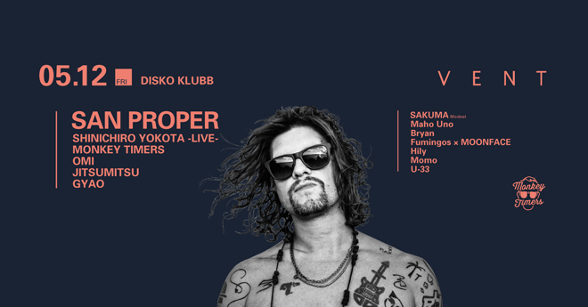 世界から注目を集めるオランダ・アムステルダムシーンの中で“Rush Hour”や“Dekmantle”といったキーとなるクルーと活動をともにする奇才サン・プロパーが、5月12日(金)に表参道VENTにて開催されるMONKEY TIMERS主催の<DISKO KLUBB>に緊急出演が決定した。