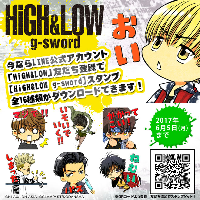 『HiGH&LOW g-sword』のLINEスタンプが5月9日(火)より販売開始された。映画、ドラマ、動画配信、SNS、アルバム、LIVEなどさまざまなメディアで展開しているプロジェクト『HiGH&LOW』。現在週刊少年マガジンでは『HiGH&LOW g-sword』というコミックも連載されている。