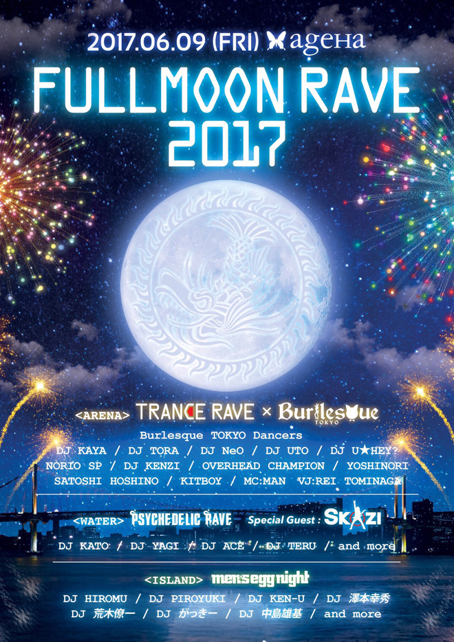 タイ・パンガン島を発祥とする日本初開催のイベント<FULLMOOON RAVE 2017>が、6月9日(日)に新木場ageHaにて行われることが満月の本日発表された。