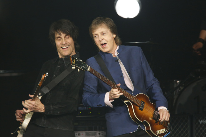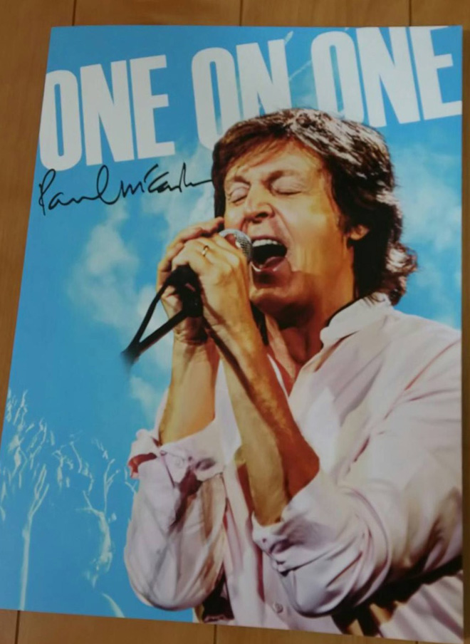 ♪ザ・ビートルズ♪「ラヴ・ミー・ドゥー」。B4デビュー・シングルとして62年秋にUKリリース。でも僕らがこのナンバーを聴いたのは64年になってから。LP『ビートルズ』だった。会場全体が手拍子で盛り上がり、そして♫Love Me Do♫をハモル。「ブラックバード」はホワイト・アルバムこと『ザ・ビートルズ』(68年)からの名作。アコースティック・ギターでの弾き語りの途中、構成を間違えて思わずポールが吹き出す。すかさずファンが歌い出してポールを好サポート。♪次はジョンに捧げます♪「ヒア・トゥデイ」。世界中で大ベスト・セラーとなった82年リリースのアルバム『タッグ・オブ・ウォー』から。またまた名作の登場だ。