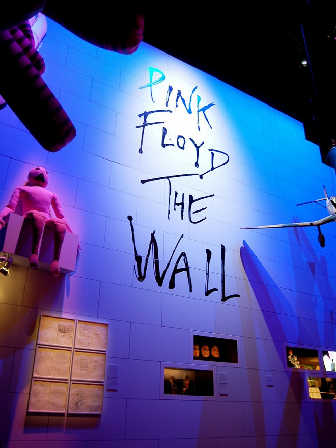 今回の展覧会はバンドと長年協働してきたデザイナーと建築家が企画段階から参加して作り上げられたもので、現在世界を巡回中のデヴィッド・ボウイ大回顧展<DAVID BOWIE is>同様、入口で渡されたヘッドフォンを装着すると展示に即した音楽や音声が流れてくるという仕掛け。バンドの歴史とともにアルバムをリリース順に紹介していく構成になっており、各コーナーには関連のポスターや楽器、手書きの歌詞などの展示に加えて、『対(TSUI)』のジャケットに登場する二つの像や、『アニマルズ』のジャケットのバタシー発電所の再現など、ジャケットアートに関連した大型展示物も多数設置されている。最後には超特大スケールのサラウンドシネマが用意され、ピンク・フロイドがデビュー当時から試みてきた音と映像の融合を体感することができる。