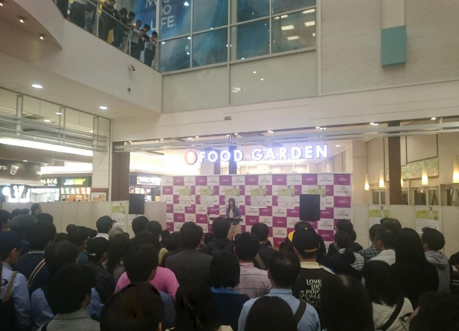 この日、会場となったイオンモール津田沼には約500人の観客が訪れ、2階、3階まで満員御礼。今回のアルバムの初回盤のジャケットの衣装で登場した奥華子は「奥華子、ニューアルバムの発売日に津田沼に帰ってきました!地元、思い出の地でアルバムの発売日にライブができてうれしいです!」と声をあげると、MASTのCM曲としてもOAされた「プロポーズ」を弾き語りで披露。会場は、“10万人が足を止めた魔法の声”と称される奥華子の歌声に酔いしれた。