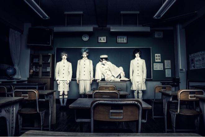 白塗り&白学ランのヴィジュアル系バンド、キズが初のミュージックビデオを公開した。