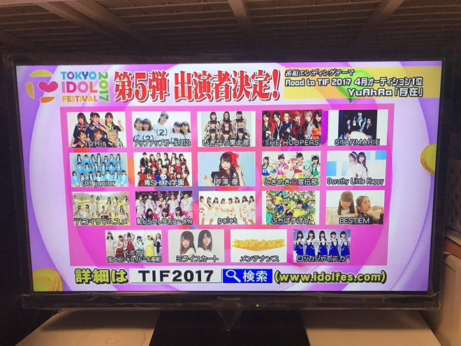 『TOKYO IDOL FESTIVAL』(トウキョウ・アイドル・フェスティバル、東京アイドルフェスティバル)は、2010年より開催されている日本のアイドルのイベント。略称はTIF(ティフ)。女性アイドルグループを中心に多数の女性アイドルが出演する。出演アイドルの数では日本最大規模のアイドルイベントです。(ウィキペディア引用)