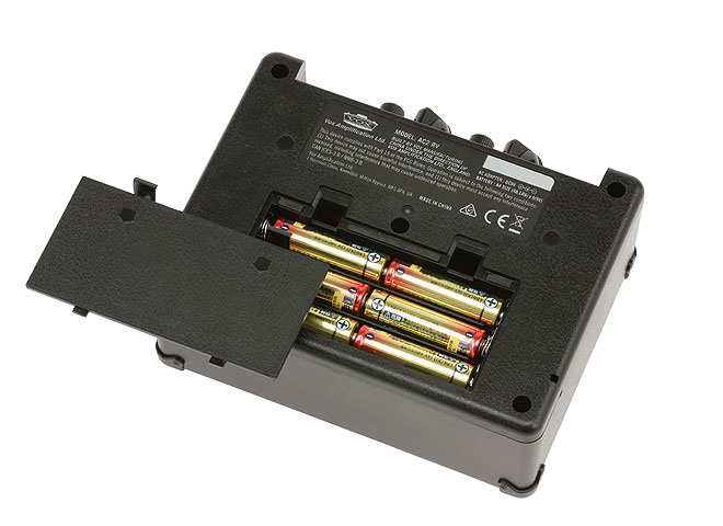 ギター/ベース演奏に必要なさまざまな機能の搭載も見逃せない。E音専用チューナーやヘッドホン端子を搭載。外部音源を一緒に聴けるAUX IN端子は、音楽プレーヤーを接続すれば、好きなバンドの曲でジャム・セッションが楽しめる。また、単3乾電池6本で約20時間動作するのもうれしいところだ。両モデルともサイズは170(W)× 70(D)× 128(H)mm、重量は620g(電池含まず)。