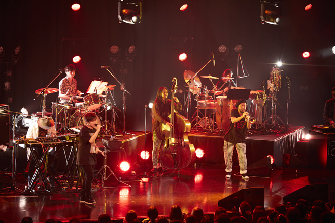 この日の公演は、デビュー作『hollow world』収録楽曲や資生堂「アネッサ」CMソングなどのタイアップ楽曲、椎名林檎「本能」のカバー曲など多彩な選曲の第1部、旧約聖書の「ノアの方舟」のエピソードに着想を得たコンセプチュアルな作品2nd ALBUM『Noah’s Ark』のストーリーを表現するステージ演出が施される第2部で構成され、全20曲を披露。スペシャルゲストとして、本人が大ファンというSOIL&”PIMP”SESSIONSからタブゾンビ(Tp)、秋田ゴールドマン(B)が登場し、同バンドの「summer love」をカバー。ライブ終盤でもぼくのりりっくのぼうよみの楽曲「after that」などに参加した。