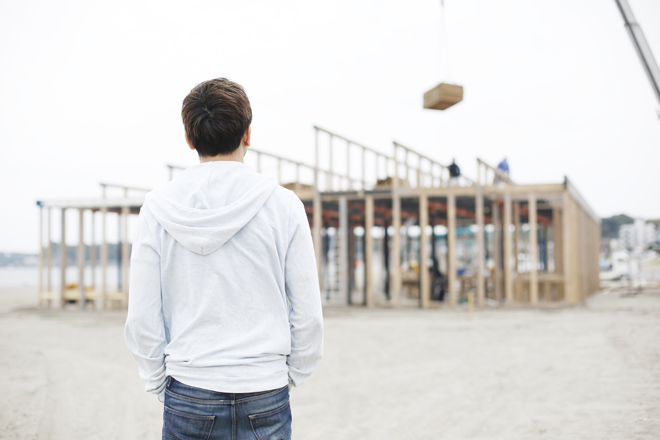 音霊は、今年で13回目を迎える夏限定のライブハウス。6月30日から9月10日までの73日間、毎日豪華なアーティストたちが登場し、ビーチでライブや食事を楽しむことができるスペースだ。今年は神奈川県三浦市の三浦海岸にロケーションを移し、この”熱い”夏に絶好の”思い出”を提供する。6月1日から行われるカウントダウンを前に、音霊プロデューサーであるクレイ勇輝に、建設中の「音霊」前にて話を聞いた。