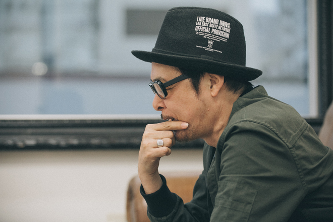 DJ KRUSH 彼は若い人からのプロップスが凄くて、最近のライブもよく見てたからね。あ、昔よりよく喋るな、って(笑)。あまり深く考えず、もう一回やってみようかなと思った。そしたら、ラップの内容が昔のドゥルーピー(・ドゥルワーズ)とか、ホンダくん(DJ HONDA)やライムスターの名前が出てきたりね、で、トラックはあえてブレイクビーツじゃなくて808系の音をぶつけてみた。