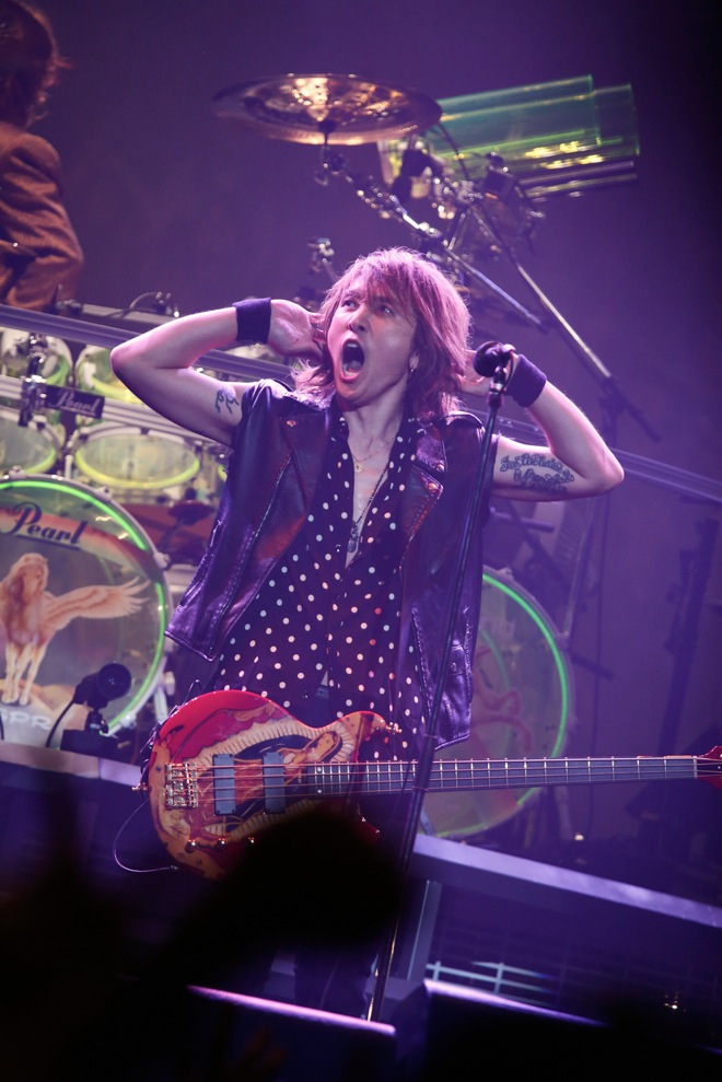 結成記念日に満員の武道館でLUNA SEAを愛し続けてきたファンに囲まれているからこその実感が言葉になり、感謝の想いを込めて届けられたのは「I for You」。何とも言えない幸せな空気が場内を包み、後半戦はJが下手スロープに走り、INORANがバックヤードのスロープで煽った「STORM」から「TIME IS DEAD」、「ROSIER」と盛り上がらないわけがない展開に突入。