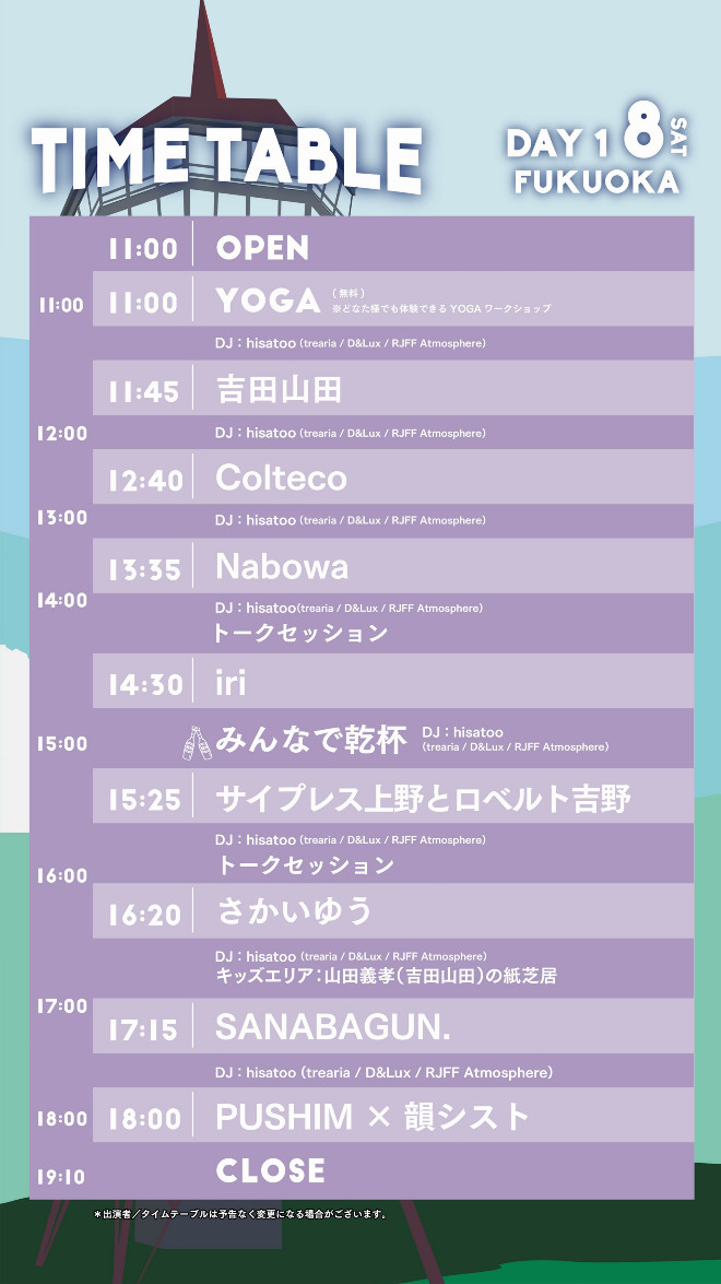 PUSHIM ×韻シスト / さかいゆう / サイプレス上野とロベルト吉野 / SANABAGUN. / 吉田山田 / Nabowa / iri / Colteco
