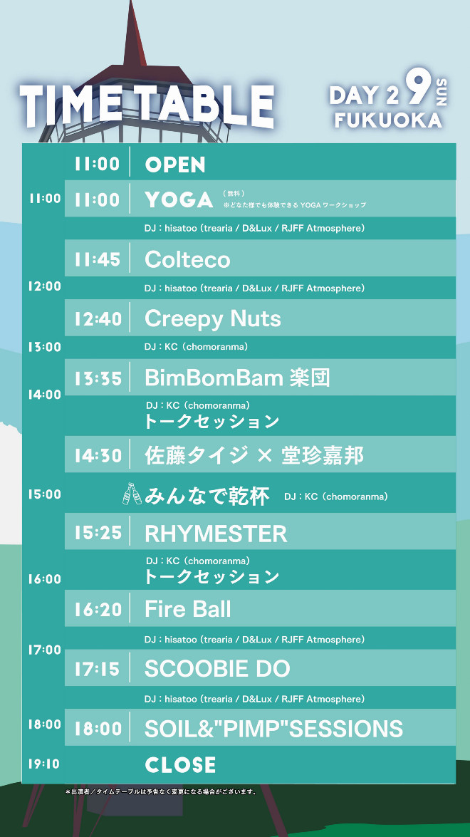SOIL&“PIMP”SESSIONS / RHYMESTER / Fire Ball / SCOOBIE DO / 佐藤タイジ×堂珍嘉邦 / Creepy Nuts / BimBomBam楽団 / Colteco