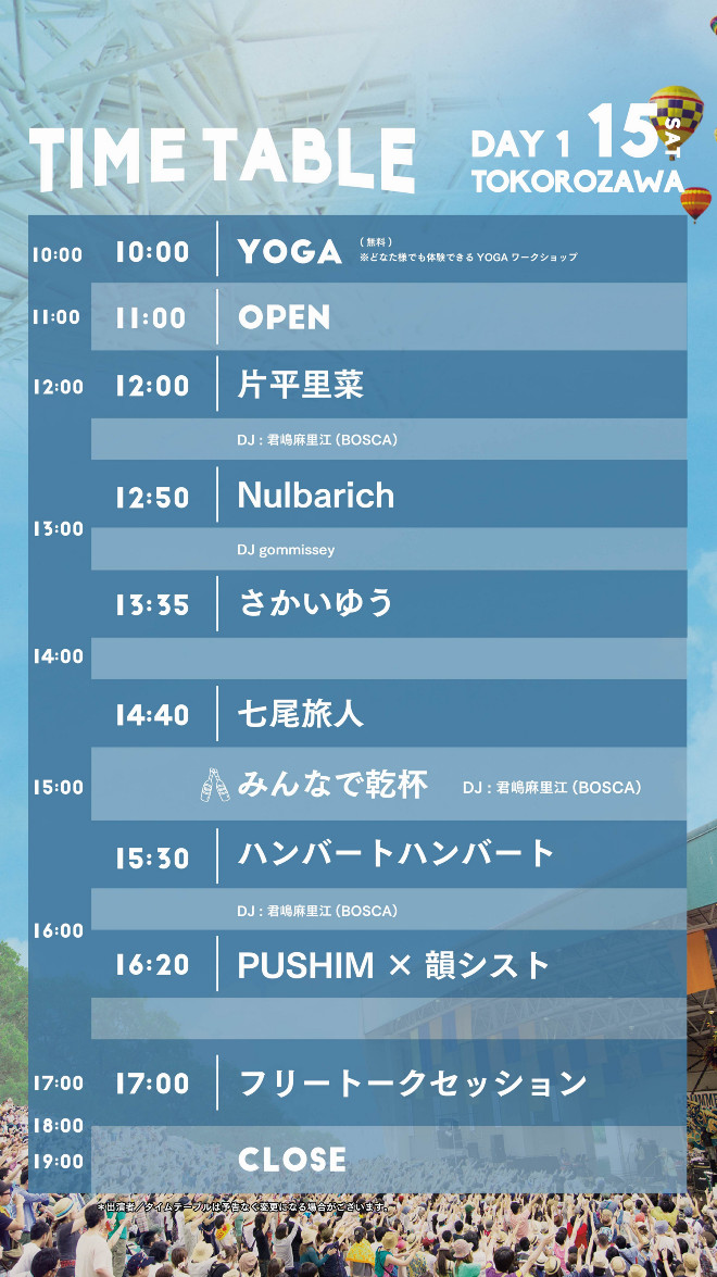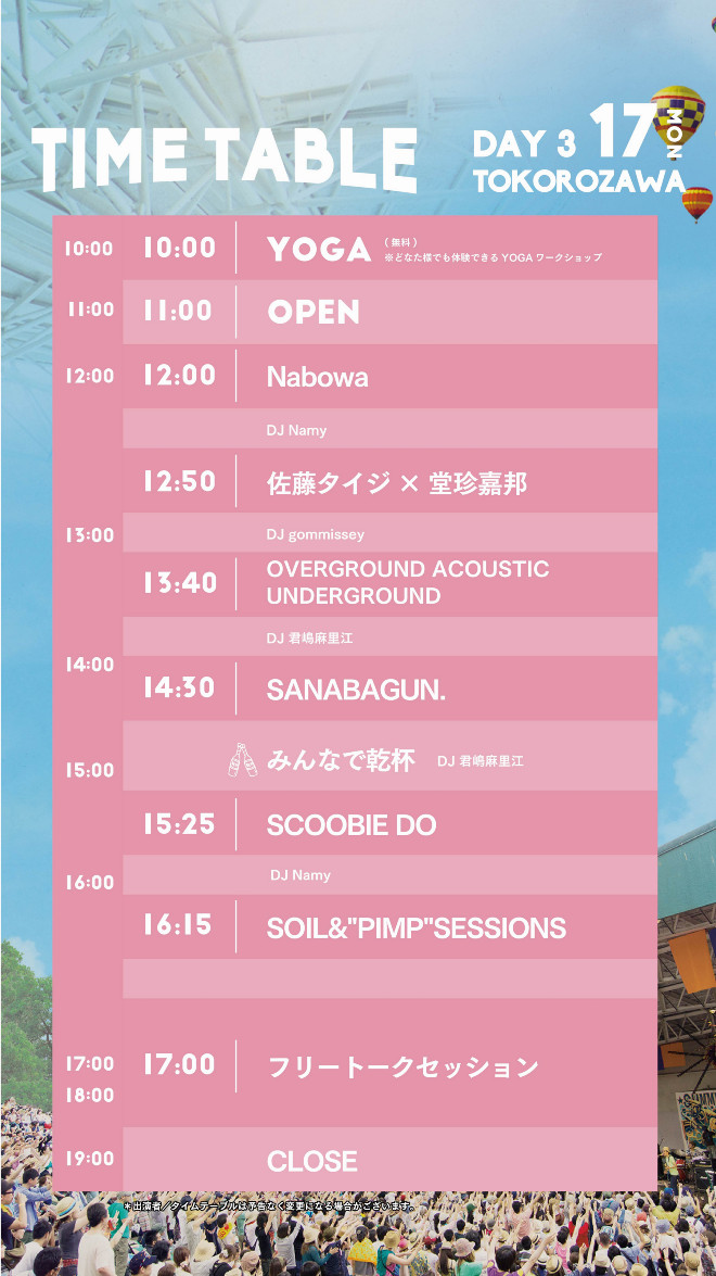 7月に大阪、福岡、所沢の3都市で開催される<夏びらき MUSIC FESTIVAL’17>のタイムテーブルが発表となった。