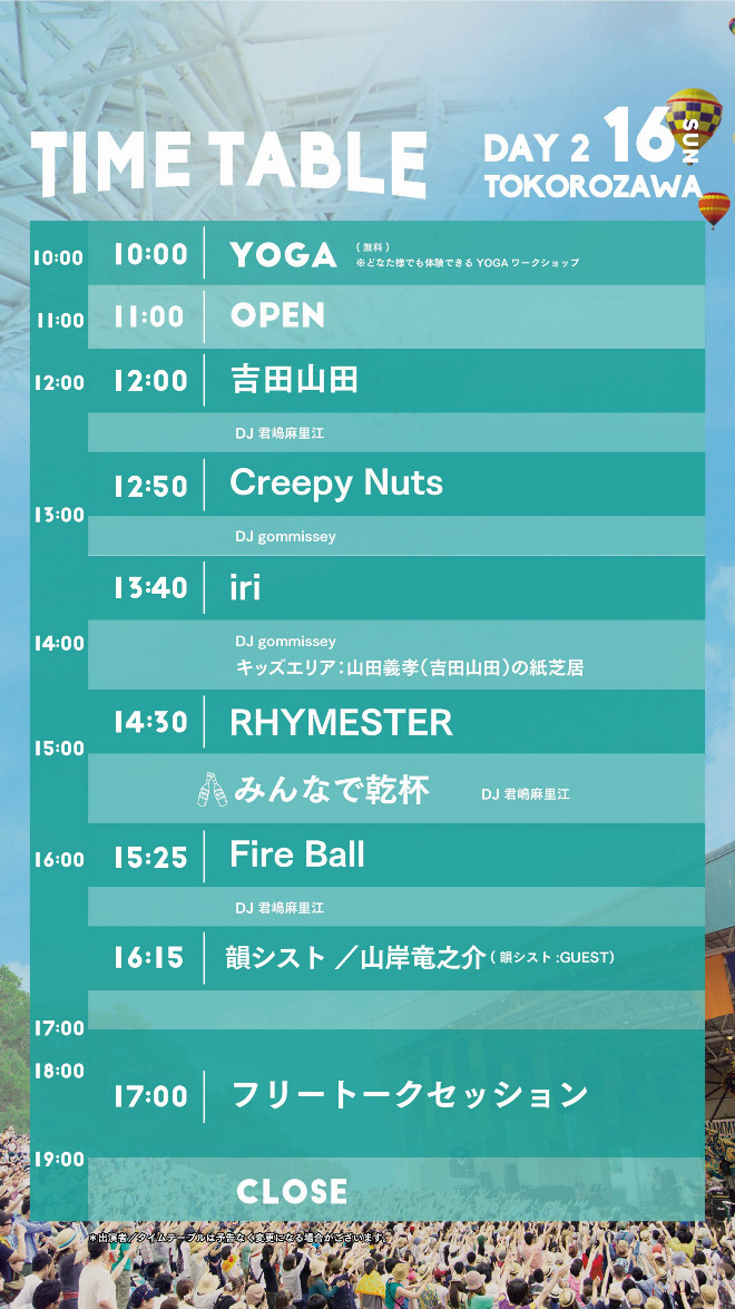 RHYMESTER / 韻シスト / 山岸竜之介 (韻シスト:GUEST) / Fire Ball / Creepy Nuts / 吉田山田 / iri