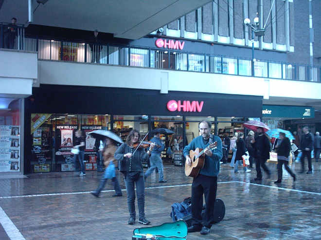 日本でいう100円ショップに似た、ポンドランドで買った1ポンドのポータブルラジオでBBCを聞きながら街中を毎日よく歩いていた。そのおかげでたくさんの告知を目にし、到着翌週に開催されたミック・ロックの写真展も逃さず参加できたし、ロッキーホラーショーの無料上映イベントではヨーロッパを感じさせる冷たい石畳に出来たてホヤホヤの異国から来た友と腰を下ろして震えながら観覧もした。また、イギリスといえばフットボール、マンチェスターと言えばマンチェスター・ユナイテッドとシティということで、どちらも観戦して生フーリガンを目撃して感動したりもした。