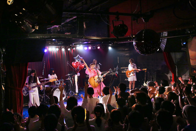 コレサワが6月1日、東京・渋谷Star loungeにてワンマンライブ<コレサワ メジャーデビュー前祝 「お祝いさせてあげまショー」>を開催。サポートメンバーにひぐちけい(G)、なかむらしょーこ(B)、U(Dr)、藤澤有沙(Key)を迎えたバンド編成で演奏が行なわれた。