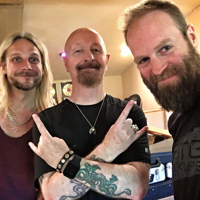 プロデューサー/レコーディング・エンジニアのアンディ・スニープは、日曜日(6月4日)、プロデューサーのトム・アロム、エンジニアのマイク・エクセターと撮影した写真をインスタグラムに投稿し、「プリーストのトラッキングがほぼ終わった。久々に最高に楽しいアルバムの1枚だ。とくにこの2人と仕事をするのは @mikeexeter @allomtom #falconfaulkner #metalgod #robhalfordlegacy #judaspriest」とのコメントを寄せた。