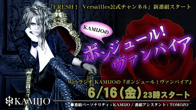 番組のタイトルは、KAMIJOの「ボンジュール!ヴァンパイア」。かつて、KAMIJOがFM-FUJIにてパーソナリティーを努めていた同番組が、「Versailles 公式チャンネル」にて復活することになる。