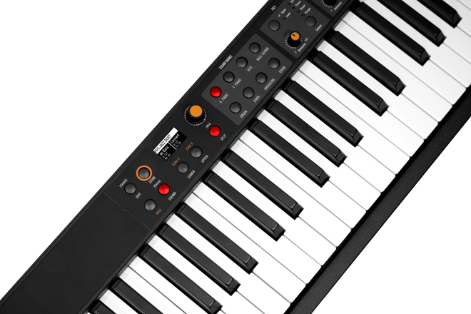 明瞭なOLEDディスプレイを採用しており、音源部には1GBフラッシュメモリーとFXと搭載、高品質なサウンドに最大6つのエフェクトを同時に実行可能だ。