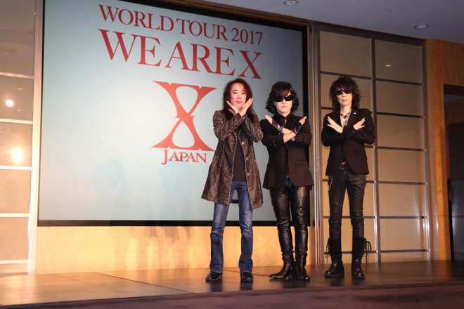 X JAPANが本日6月9日(金)記者会見を行い、7月より行われる<X JAPAN WORLD TOUR 2017 WE ARE X>の日本公演の決行を発表した。