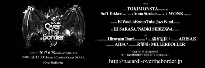 音楽フェスティバル×アートミュージアム”をコンセプトとした、バカルディ主催の完全招待制フリーパーティ<BACARDI “Over The Border”>が6月29日(木)東京、7月1日(土)大阪で開催される。