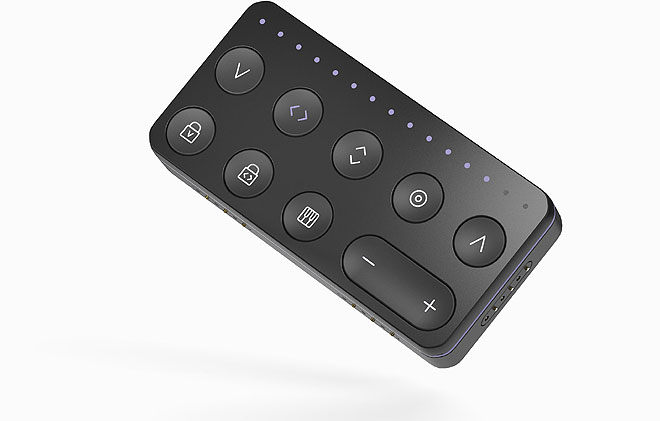 もう一つの新デバイスである「Touch Block」は、上記「Seaboard Block」とBLOCKSファミリーのメインデバイス「Lightpad Block」の5Dタッチを演奏スタイルに合わせて制御するデバイス。これらと接続することで、ストライク、グライド、スライド、プレス、リフト、ストライク・ロック、グライド・ロックおよびピアノ・モードを瞬時にコントロールできる。こちらもDNA端子を前後左右に搭載する。
