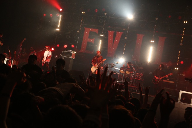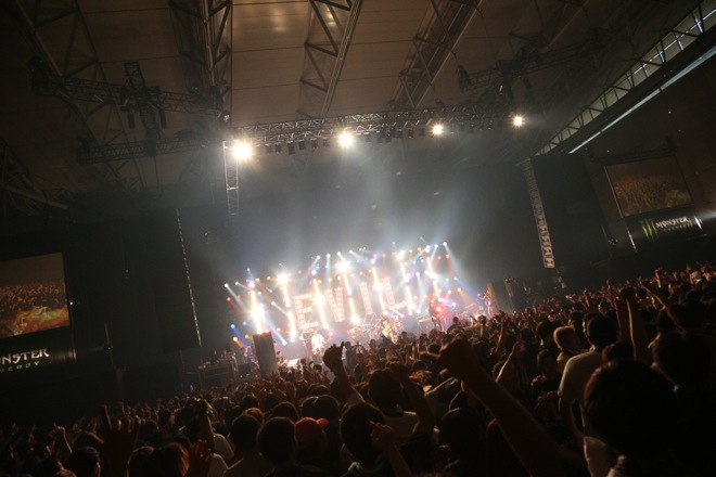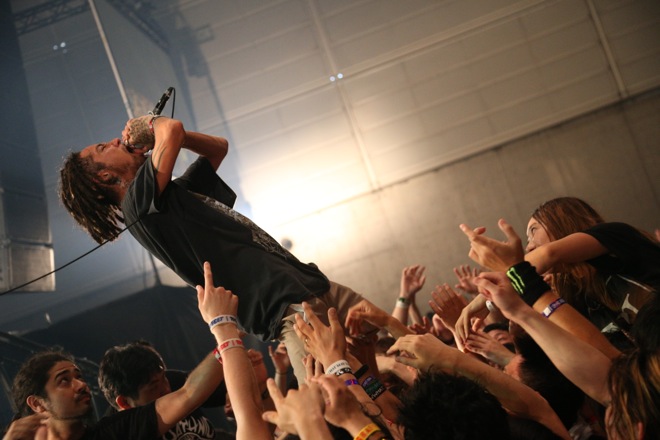 「Adam & Eve」で客席へと乗り出したJESSEは、観客の肩を借りて揉みくちゃになりながら歌う。我も我もと近づくクラウドサーファーたちに、「神輿は俺だ!」と叫び、不安定な人波の上でヴォーカルをとった。親密さを増した場内に響きわたったアンセム「Friends」は感動的であり、フロア一面がコブシを掲げ、ありったけの声で歌うという素晴らしい光景を作り出した。