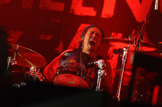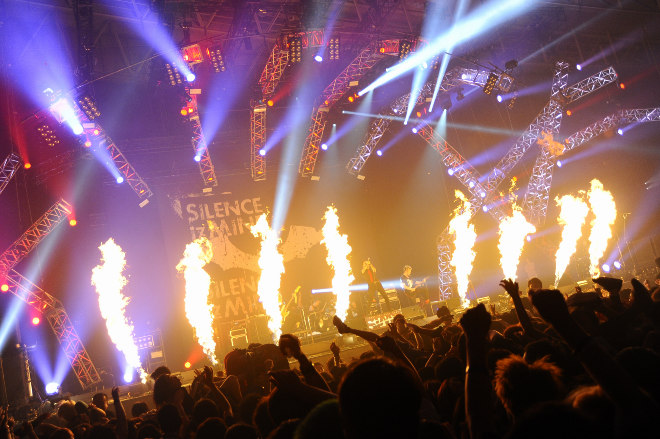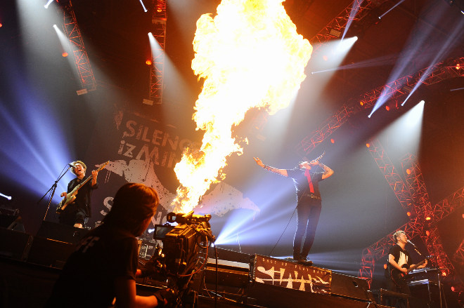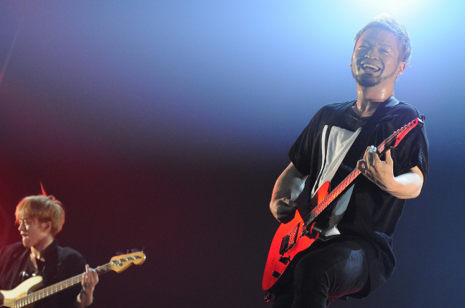 開演時間を5分回った頃、スクリーンにメンバーの姿が映し出された。その中で「PIZZA OF DEATHがトリはSiMしかないと頭を下げるから」とか、「悪魔の宴?それにぴったりのバンドはSiMしかいない」とか、「SiMの出番が待ちきれなかったって人も、ホルモンと10-FEETで体力を使い果たしたから後ろで大人見しますってゆるい奴らも、全員まとめてぶっ殺す」とか、散々嘯いたもんだから、一体、どんなパフォーマンスを見せてくれるんだろうと期待していたら、彼らはベスト・セレクションと言える選曲で、暴れることもできるし、踊ることもできるし、シンガロングもできるSiMサウンドの魅力を、いつも以上にエネルギッシュなパフォーマンスとともにこれもでかと見せつけた。