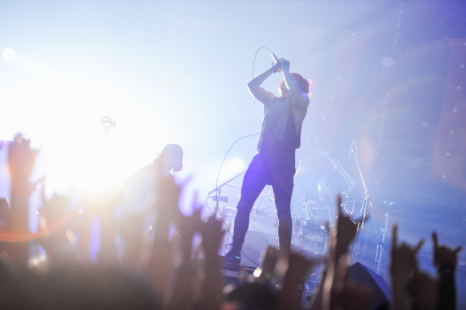また、オーディエンスもこのプログレッシヴなサウンドに見事に対応しているのだから驚きだ。曲調が次々に変化していく中で、彼らは時にヘドバンし、時には激しくダンスし、時にはモッシュ&クラウドサーフをする。「Nex:us」では再び“ウォール・オブ・デス”が繰り広げられるなど、とにかくこのバンドをめぐる環境すべてが驚異的としか言いようがない。