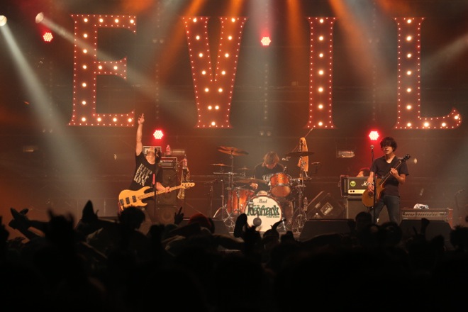6月21日にリリースされるミニ・アルバム『WAY』から新曲「PASSED AWAY」が披露され、その背中が物語る音をアグレッシヴに聴かせると、後半もまた息もつかせぬ展開で曲を連投する。死闘というにもふさわしい、全身全霊のぶつかり合いだ。ずっしりとしたドラムが手拍子をうむ「Grab Again」、ロックなイントロのギターリフに会場を揺らす歓声を起こした「share」、そして最高のシンガロングチューン「BE FULL」。ラストの前には、木下が「俺たちはこれからも俺たちでおるから、君らもこれからも君ら自身でおってな」と語りかけた。歓声と拍手のなかで響いた「reason」は、圧倒的な力でEVIL STAGEをひとつにしていった。