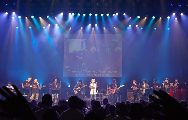 そしてトリを飾るのは、このプロジェクトのお目付役とも言える仲井戸“CHABO”麗市である。チャック・ベリーの「Rock&Roll Music」で会場を一気にヒートアップさせた後は、斉藤ノヴとのセッションで「夏に続く午後」を披露。そして最後は再びTOSHI-LOW(BRAHMAN/OAU)と共に「Hungry Heart」をセッションし、会場全体を大いに盛り上げた。恒例のフィナーレは、出演アーティスト全員が一堂に会し、プロジェクトのテーマソング「One of Love」を熱唱。音楽と共に大きな愛に包まれる中、来年もまた同じ日に会うことを約束し、年に一度のGIGは幕を閉じた。