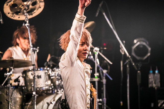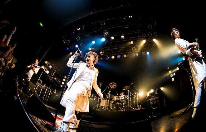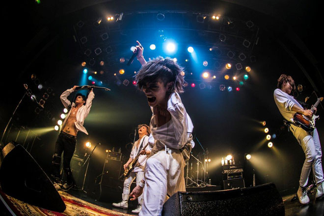 そんな超満員のTSUTAYA O-WESTはほぼ定刻通り、勢いよく飛び出してくるメンバーに歓声があがるとライヴはスピード感あふれる「ANTITHESE」でスタート。徐々に熱を帯びていく会場の温度をさらに上げるべく「ケミカルZOO」、「RUDENESS RESORT」を立て続けに演奏。“踊れ!阿呆に!”の歌詞の通り、「踊る阿呆に見る阿呆、同じ阿呆なら踊らにゃ損々」と言わんばかりに飛び跳ねるフロア。