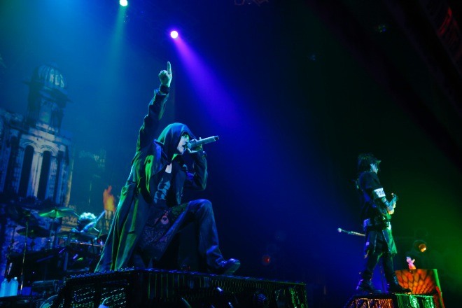 大歓声に包まれる中、K.A.Zがそう意気込めば、HYDEも「毎日、全力でみんなをかわいがってやろうと思ってます」と宣言。ツアー最終日の仙台公演まで、オーディエンスと一緒に『UNDERWORLD』の楽曲たちを育てていきたいと誓った。その後も曲を追うごとに場内の盛り上がりは激化の一途をたどり、熱狂を加速させたまま初日のステージはエンディングへとなだれ込んだ。