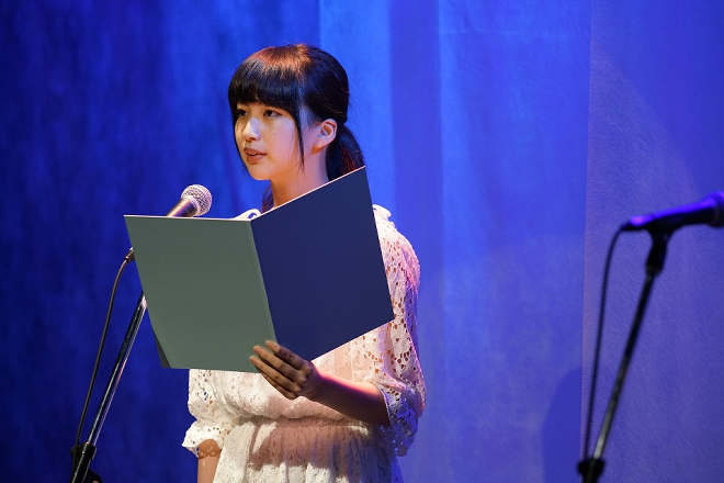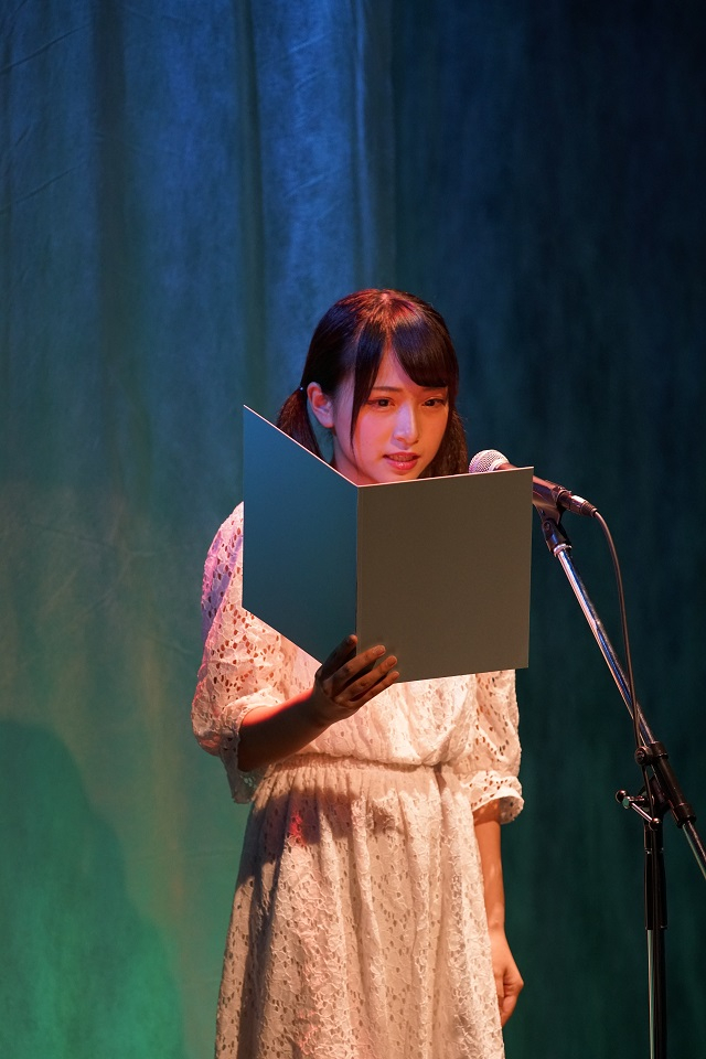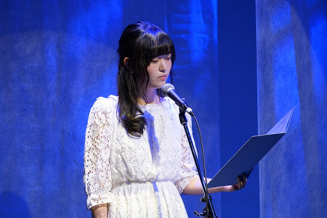今回も各話のユニットの配役をシャッフルして臨むことになったのだが、前回公演と大きく異なるのは、すでに22/7における担当キャラクターが決定し「顔出し」している8人に関して、はじめてステージ上に姿を現しての朗読となったことだ。ストーリーによっては未だその姿がベールに包まれている3人とユニットを組むため、ひとりはステージ上に、もうひとりはステージ袖にという形式での朗読劇となった。