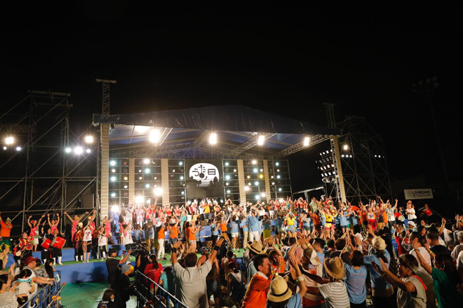 その先も、地元・嘉手納町で音楽を楽しむサークルや団体、ダンスチームなどが次々と登場。BEGINとバンドメンバーが引き続きバックを務める中、「まつり」「月がとっても青いから」「いつでも夢を」などの昭和歌謡、「さらば青春」「あの素晴しい愛をもう一度」「世界に一つだけの花」といったフォーク&J-POPが披露される。ステージ上はプロミュージシャンとアマチュアシンガーが混在している状態だが、その間に壁はまったく感じられず、全員がセッションを心から楽しんでいるようすが伝わってきた。