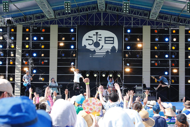 梅雨も明けて沖縄独特の強い日差しが照りつける好天の下、会場には7000人の観客が参集した。まずは嘉手納町長が開会宣言を行ったあと、トップバッターのHYが登場すると会場は一気にヒートアップ。「今日は歌って踊って、一緒に楽しみましょう!」との呼びかけに、観客も大きな手拍子や歓声で応えていく。もともと<うたの日コンサート>は、「うた」に感謝の気持ちを表し、「みんなでうたをお祝いしよう」という主旨で始まったイベントであり、ここ数年はステージ上のアーティストだけでなく「観客も出演者」をコンセプトにしている。その言葉通り、冒頭からアーティストと観客の一体感を感じられるステージとなった。