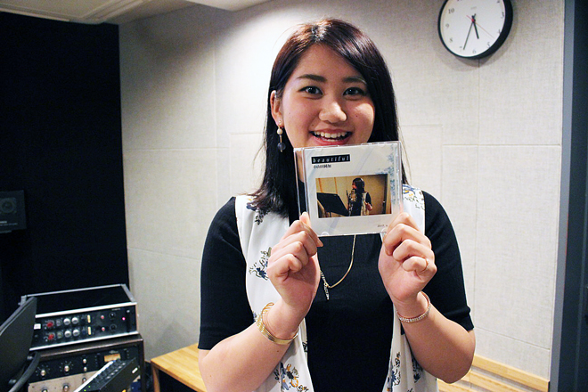 今回は、絢香のスタッフである吉岡航さんがレコーディングに立ち合い、ボーカルディレクションしてくれるということもあり、本人はさぞかし緊張して前日は眠れなかったのでは…と思いきや、「昨日はぐっすり眠りました!」とのこと。さすが、グランプリを受賞するだけのことはあって、歌唱への自信を伺わせた。歌手を目指しており、音楽を学びながら作詞作曲も自ら行いライヴを行うなどしているそうだ。