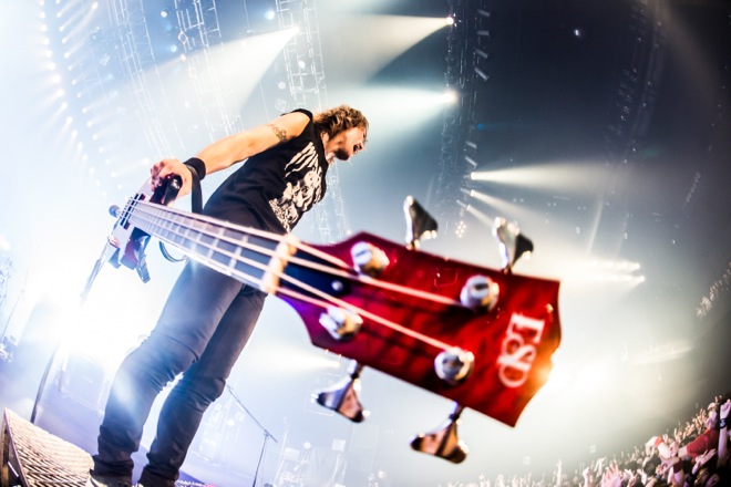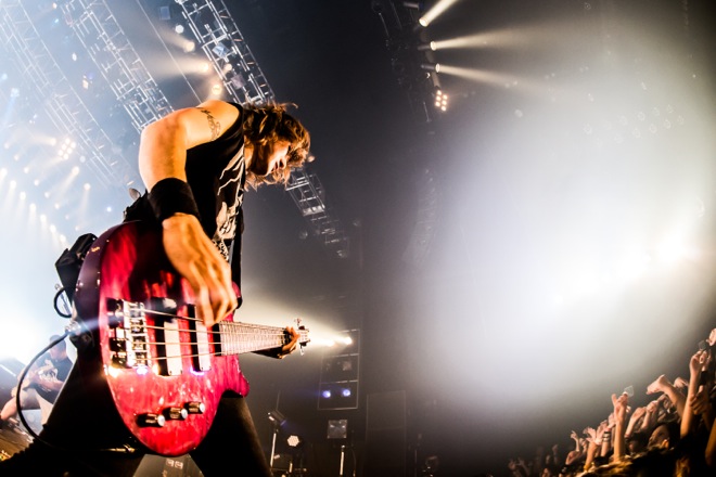 本編ラストナンバーは「Evoke the world」。光が降り注ぐような壮大でタフなサウンド、夢は終わらないと歌うメッセージはJとファンを繋ぐ誓いの曲。解き放たれた空気が場内を包み、熱が醒めやらない中、Jは高くベースを掲げてベースにキスをし、ステージを去った。