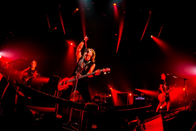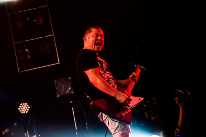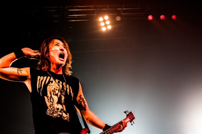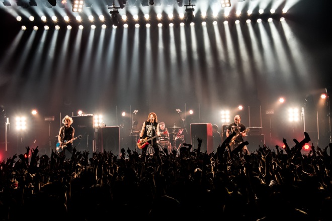 Jがみんなの絶叫に耳を傾け、「野郎はいるか?」と問いかけて返ってきた野太い声に「かよわい女の子たちを助けてやってくれ。ケガ人出すなよ」と伝え、「野郎みたいな女の子はいるか?」と叫ぶと、これまたタフな声に「じゃあ、かよわい男の子たちを助けてやってくれ」と苦笑い。そしてライヴは「Go Charge」から怒涛の後半戦に突入。「東京! 全部燃やせ!」と叫んだ「PYROMANIA」ではステージが燃えるような赤に染まり、フロアにはいつものように数え切れないライターの炎が灯されて力強い歌声が響きわたった。
