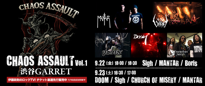 Boris、CHURCH OF MISERY、DOOM、Sigh、そしてMANTAR。これだけのバンドを一度に見られる<CHAOS ASSAULT>、お楽しみに。