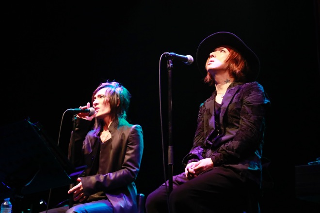 当然のことながら、「Beside you」で始まった第二部も圧倒的な深さに到達。「SOLITUDE」を歌い終えた後、清春は「僕はくどいぐらいにMORRIEさんのことが好きだと言い続けてるんですけど、歌われる姿を真横で見てると、場を支配してらっしゃるんです」とMORRIEとのひと時を興奮気味に振り返った。特に、本編終盤の「Blood smell cause complex」「サロメ」「ゲルニカ」などで見せたパフォーマンスは圧巻。一曲歌い終えるごとに、その余韻の中で清春が漏らす吐息が官能的かつ感動的だった。