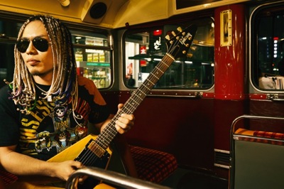 dEnkA:僕は今回、ギター・フレーズ全部を意味のあるものにする、ということを意識しました。すごく簡単なフレーズでも、なぜそういうフレーズを弾いたのかを説明できるアプローチ、それが全体的にできましたね。個人的に印象が強いのは「Louder」のソロというか、半音ずつ上がっていくフレーズに対して、3度でハモッているだけのパートがあって。そこでトーキング・モジュレーターを使っているんですけど、ずっと「なにが出るかな、なにがでるかな」と言いながら弾いているという、アホか!みたいなフレーズが(笑)。