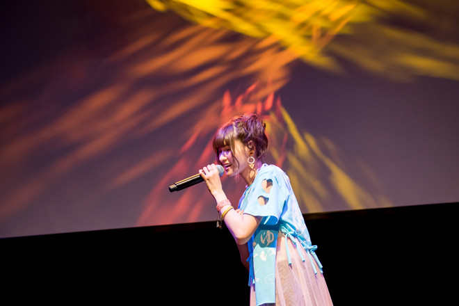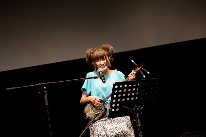 1部では「ドキドキアンケート!ピタリ当てましょう!」のコーナーや、声優ならではの映像と合わせて朗読をするコーナー、ライブコーナーを実施。2部公演では「ドキドキチャレンジ!Win or Lose!」と題し縄跳びや反復横跳びなどにチャレンジしたほか、5月にリリースした最新シングルより「スペアミント」のミュージックビデオのアザーテイク映像を公開、1ヶ月前に始めたばかりだという三線で「涙そうそう」と「さとうきび畑の唄」を弾き語りで披露するなど、1部と2部で大きく内容を変えて展開された。