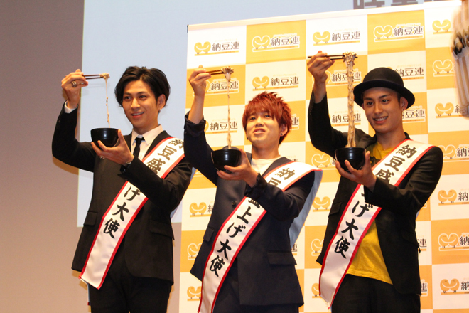 3人を代表して花村想太が認定書に署名をし、「納豆盛上げ大使になったということで、目標を掲げたいと思います! 世界中を納豆で埋めつくします! 納豆の雨が降り注ぐがの如くがんばります」と宣言。納豆PRへの意欲を表した。