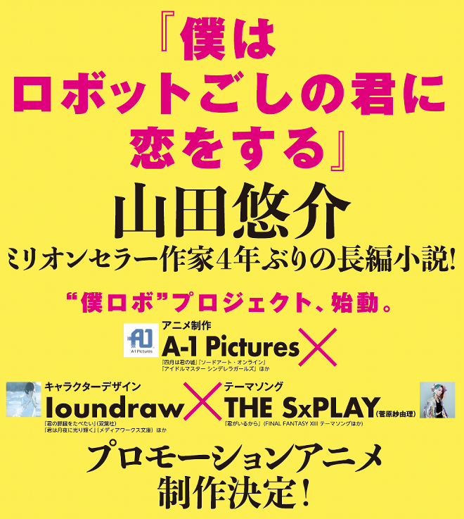『僕はロボットごしの君に恋をする』は、『リアル鬼ごっこ』を皮切りに数々のヒット作で知られる山田悠介にとって4年ぶりの長編小説。2017年10月中旬の刊行を前に、本作のプロモーションアニメでは『四月は君の嘘』『ソードアート・オンライン』などで知られるA-1 Pictures、キャラクターデザインに『君の膵臓をたべたい』のイラストを担当したloundrawが参加する。